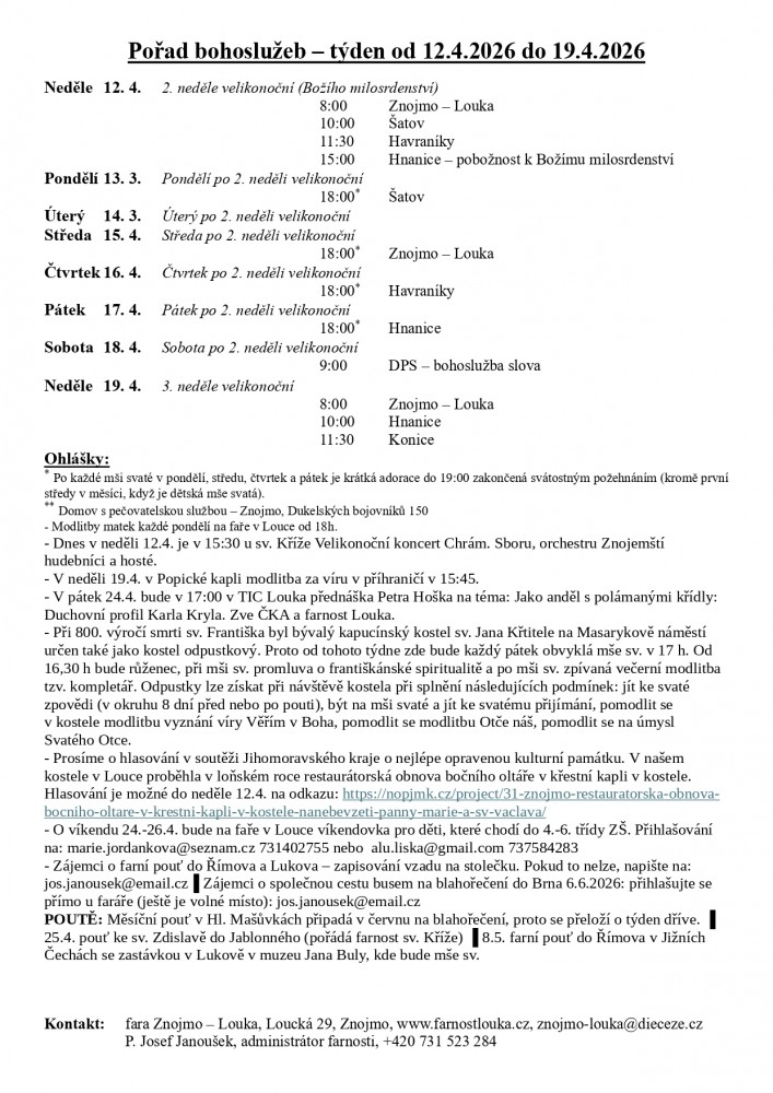 Ohlášky 12.4.-19.4. 2026